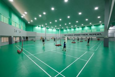 The area of our badminton hall is more than 15,000 square-feet. We are well-lit with generous walking space in between each court.